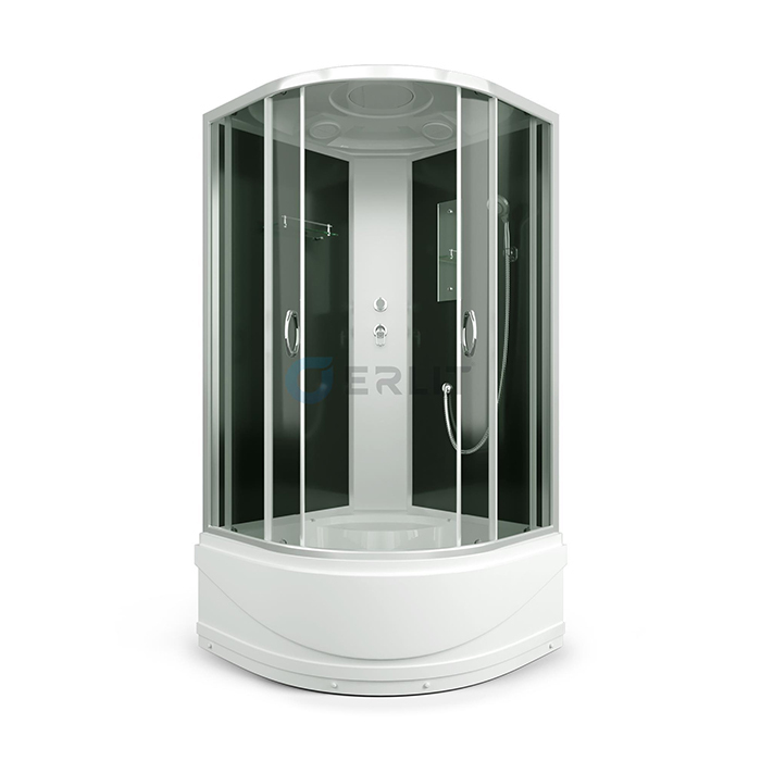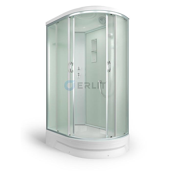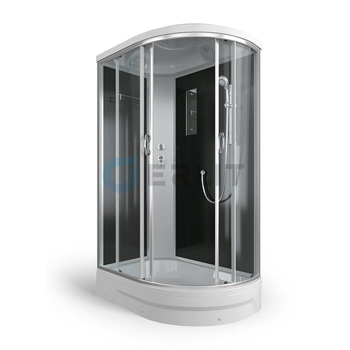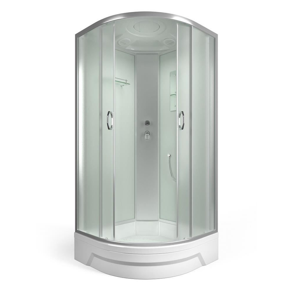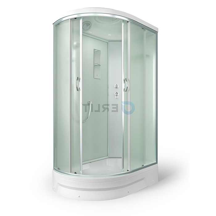 Поддоны душевых кабин имеют закладные из влагостойкого ЛДСП, выдерживают вес до 500 кг. и устанавливаются на стальной каркас с 5 точками опоры, что позволяет равномерно распределить нагрузку.