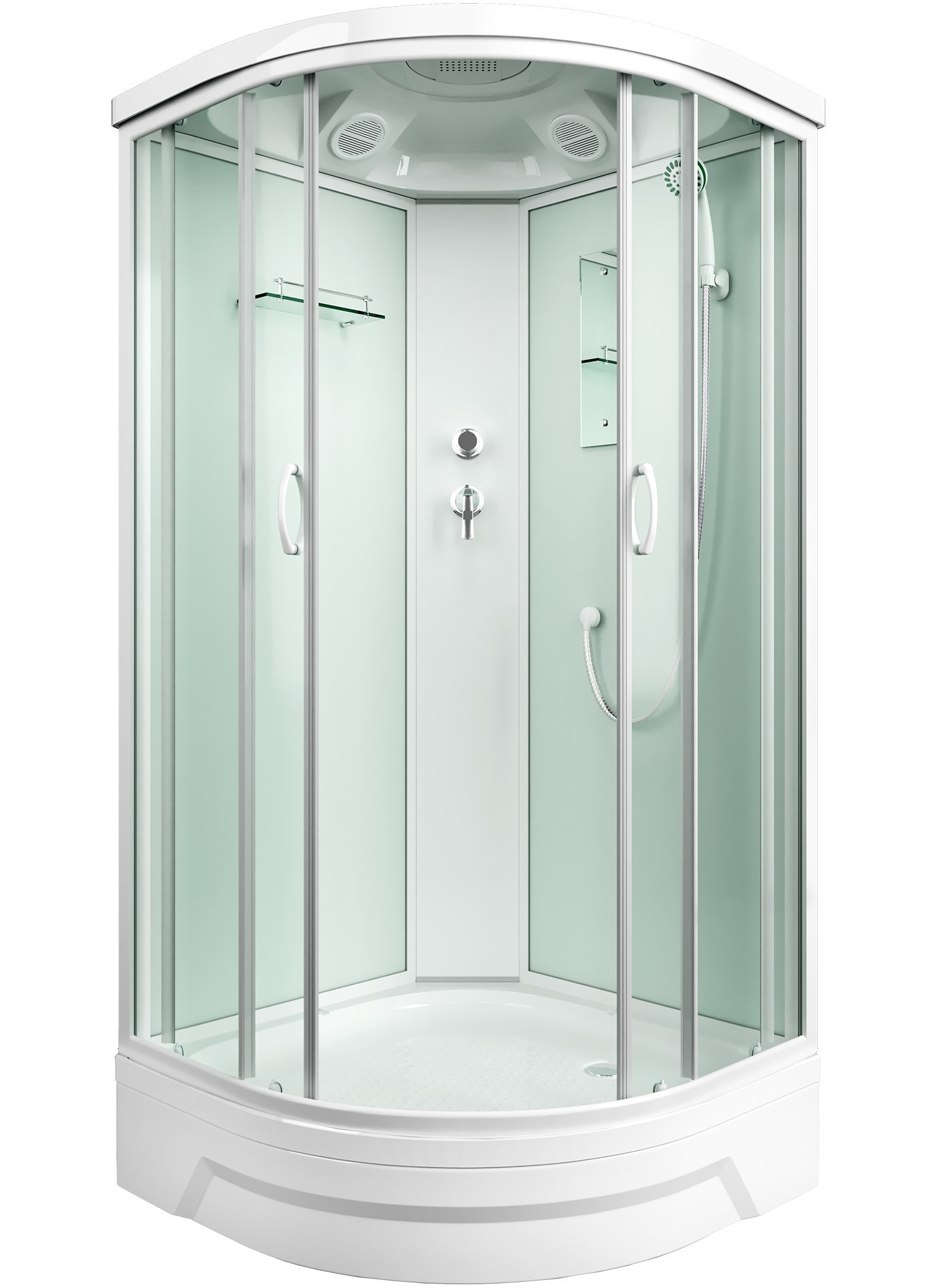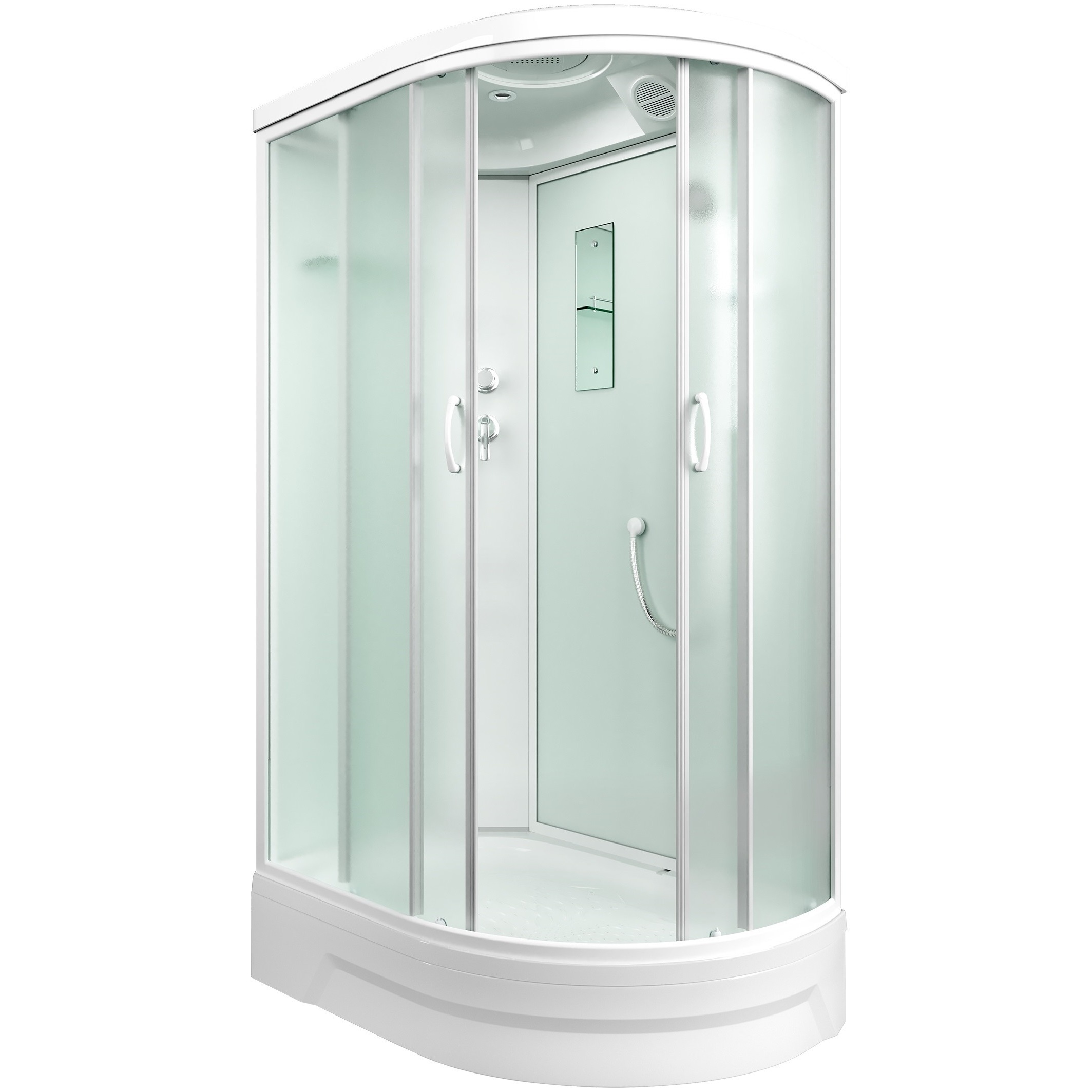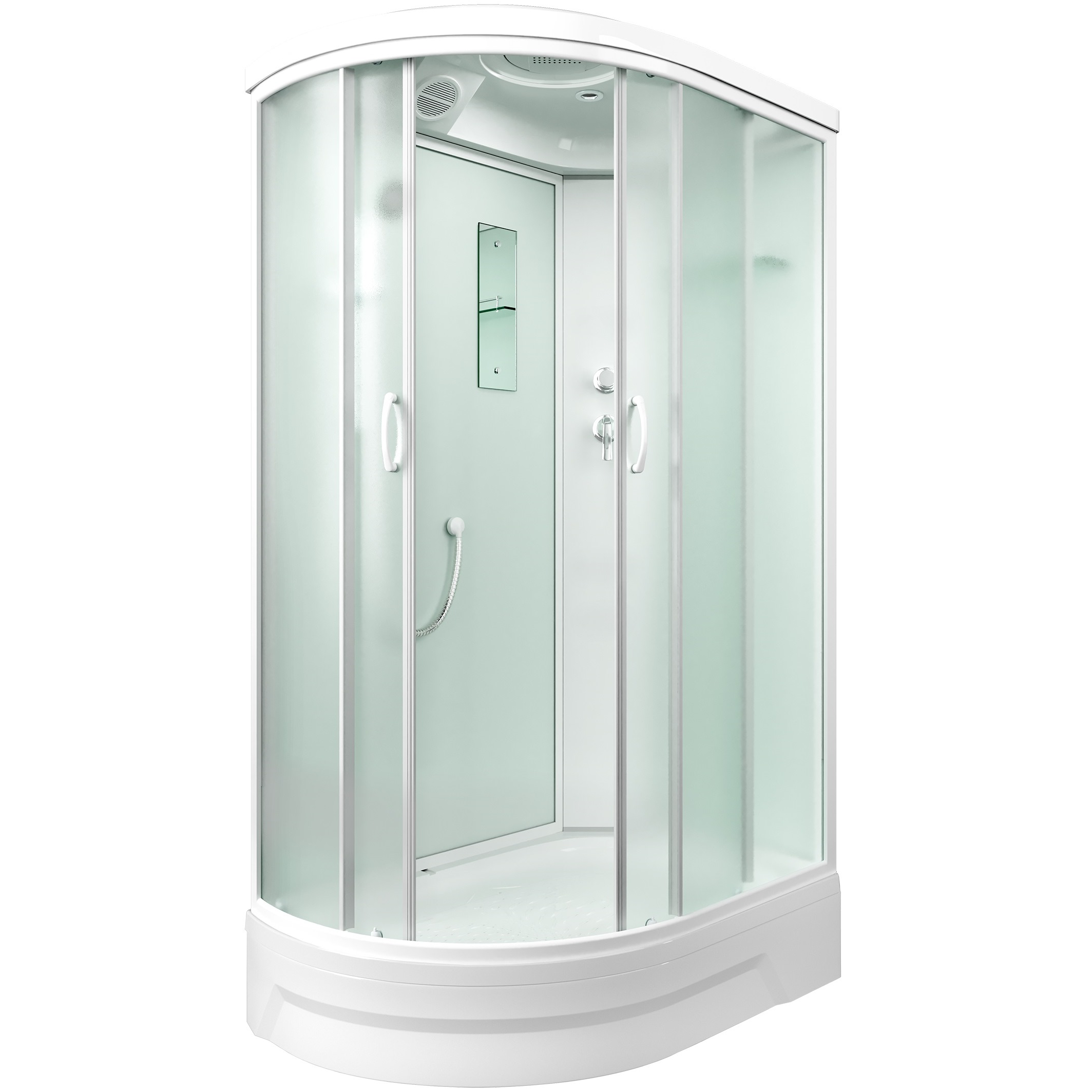 Поддоны душевых кабин имеют закладные из влагостойкого ЛДСП, выдерживают вес до 500 кг. и устанавливаются на стальной каркас с 5 точками опоры, что позволяет равномерно распределить нагрузку.