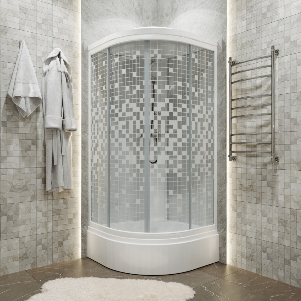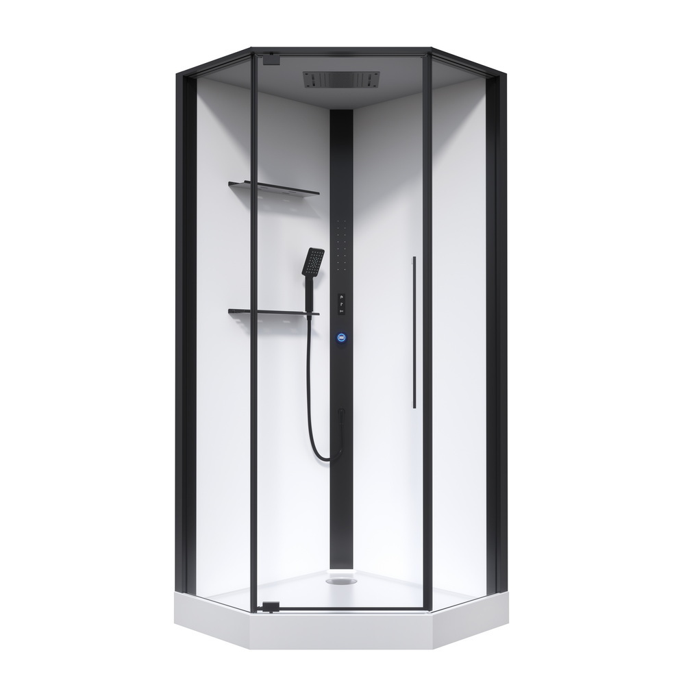 Поддоны душевых кабин имеют закладные из влагостойкого ЛДСП, выдерживают вес до 500 кг. и устанавливаются на стальной каркас с 5 точками опоры, что позволяет равномерно распределить нагрузку.